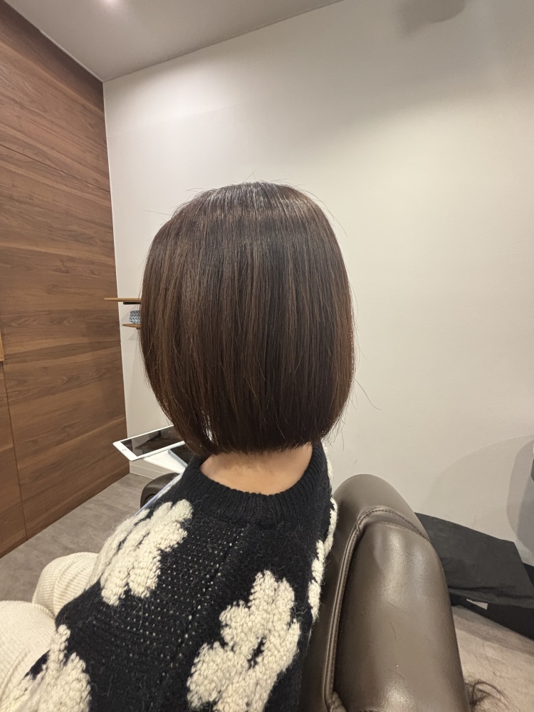 根元を丁寧に見ながら、・必要な部分だけリタッチ矯正・丸みを残した自然なストレート・毛先の負担を増やさない薬剤選びこの3つを軸に施術内容を組み立てました。